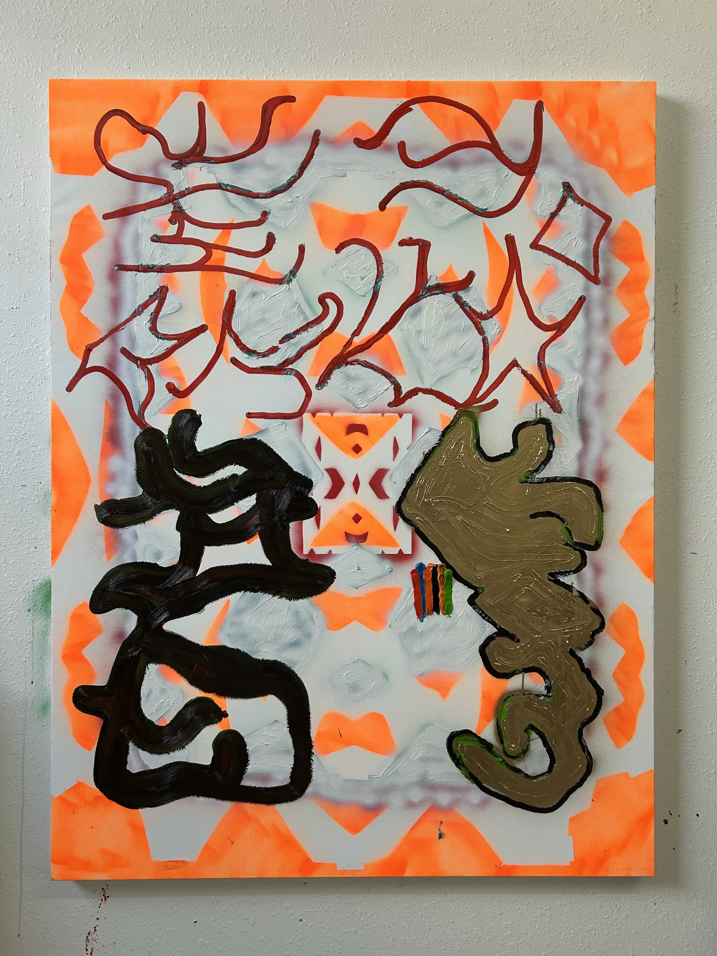 "Untitled", 2024 oil, acrylic, spray paint on canvas (39"x47.5")