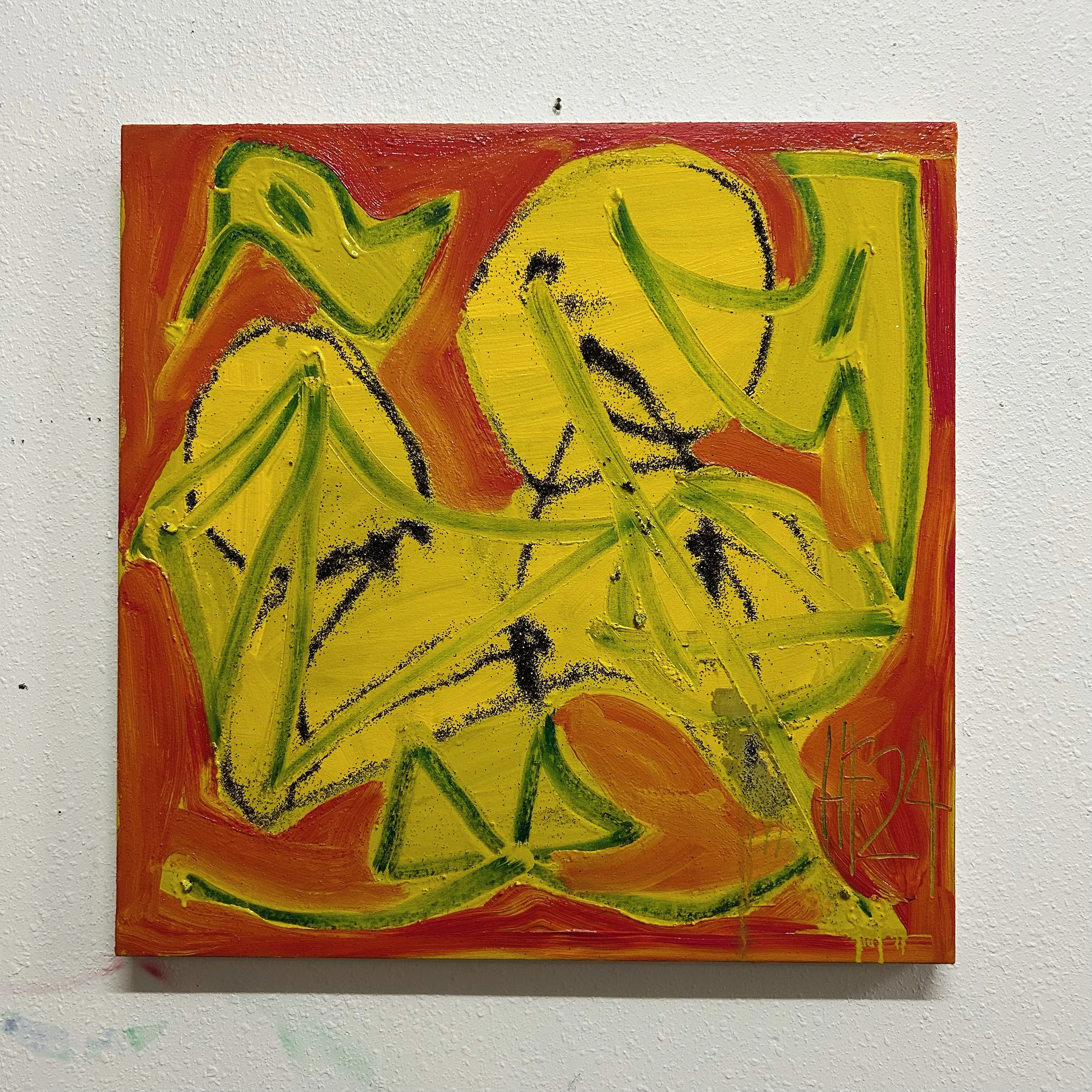 "Untitled", 2024 oil stick, acrylic, glitter on canvas (30"x30")